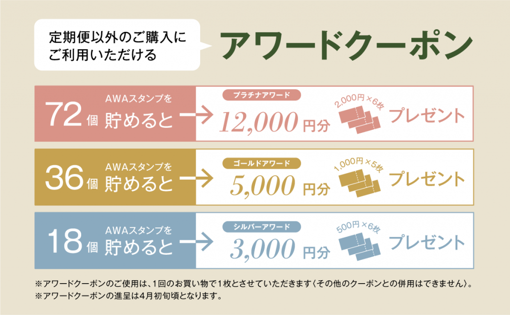※アワードクーポンのご使用は、1回のお買い物で1枚とさせていただきます。